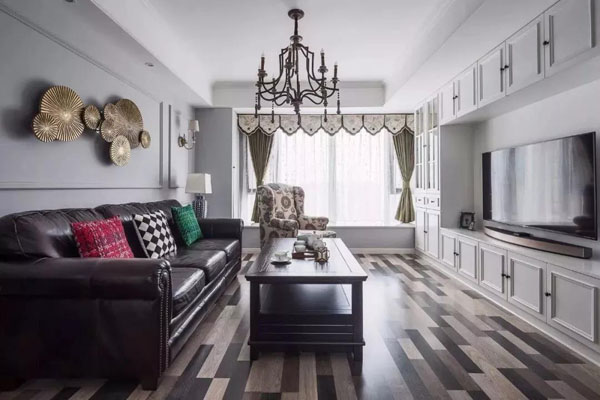 3、美式鄉村風格主題思想就是回歸自然,溫馨舒適,一般墻面的色彩,采用自然懷舊褐色和黃色為基調,棉麻,小搖椅,碎花布也是點睛之筆。