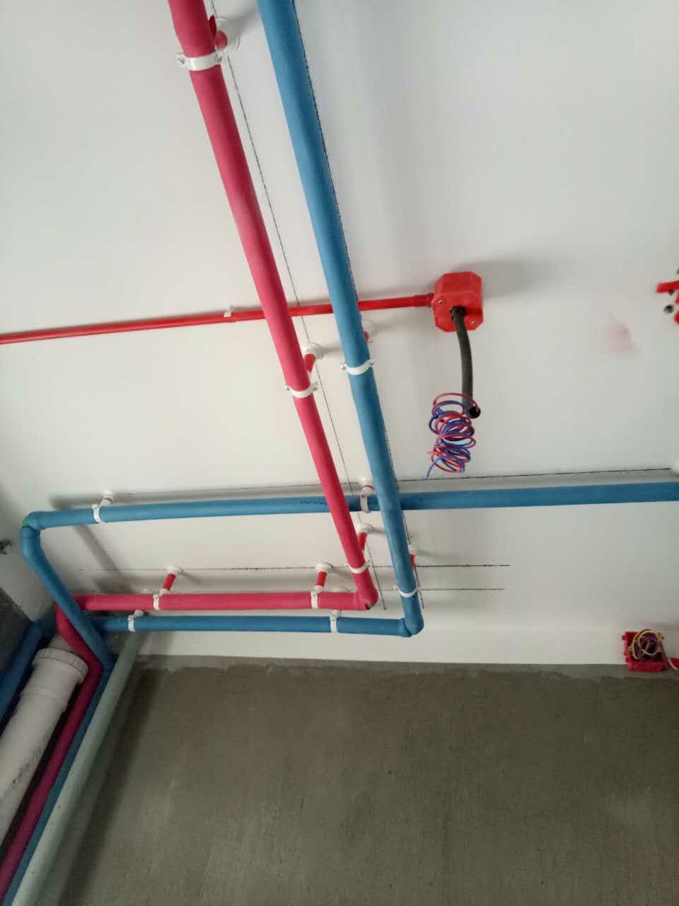 所有線路中間無接頭,接頭出線在暗合或開關暗合內,有接頭的使用WAGO連接器進行連接;電線品牌和導線截面規格符合設計要求;使用打壓泵打壓20分鐘,其打壓值穩定在0.6-0.8兆帕
